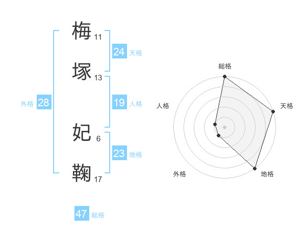 梅塚 妃鞠さんの総格は47画の5点!