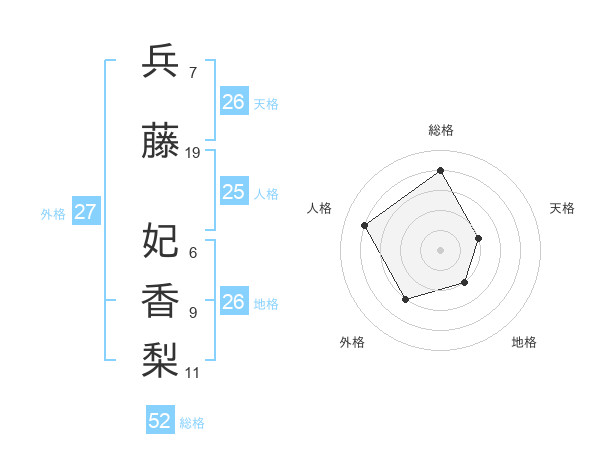 兵藤 妃香梨さんの総格は52画の4点!