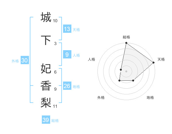 城下 妃香梨さんを姓名の画数から五運を鑑定