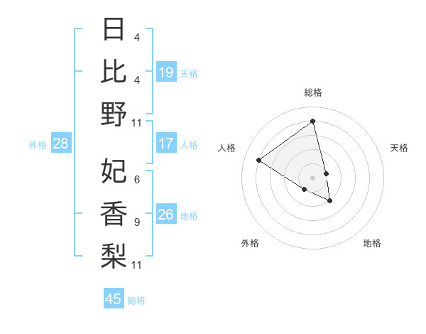 日比野 妃香梨さんを姓名の画数から五運を鑑定