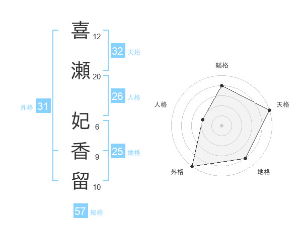 喜瀬 妃香留さんを姓名の画数から五運を鑑定