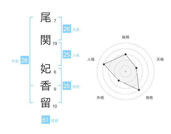 尾関 妃香留さんを姓名の画数から五運を鑑定
