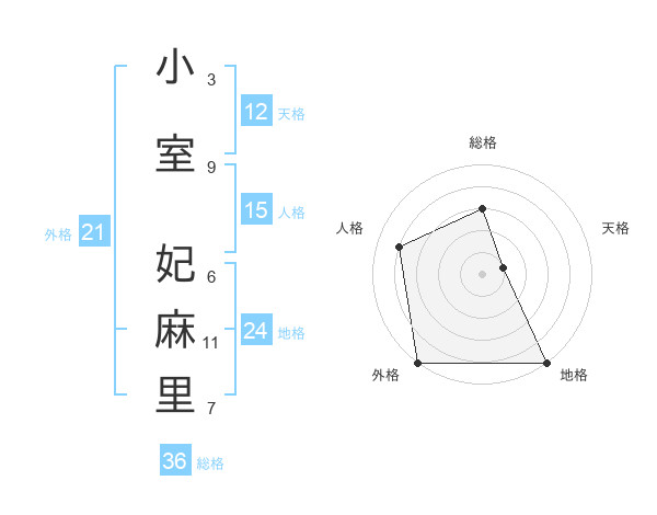 小室 妃麻里さんの天格は12画の1点!