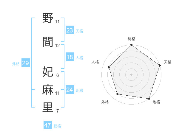 野間 妃麻里さんを姓名の画数から五運を鑑定