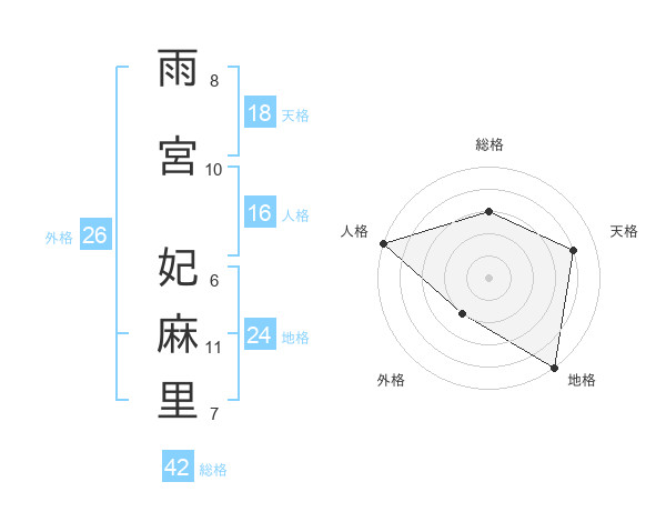 雨宮 妃麻里さんを姓名の画数から五運を鑑定