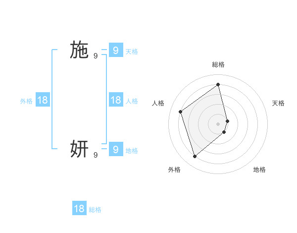 施 妍さんの総格は18画の4点!