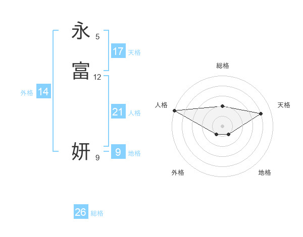永富 妍さんの総格は26画の2点!