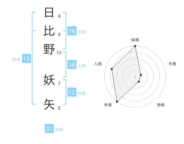 日比野 妖矢さんを姓名の画数から五運を鑑定