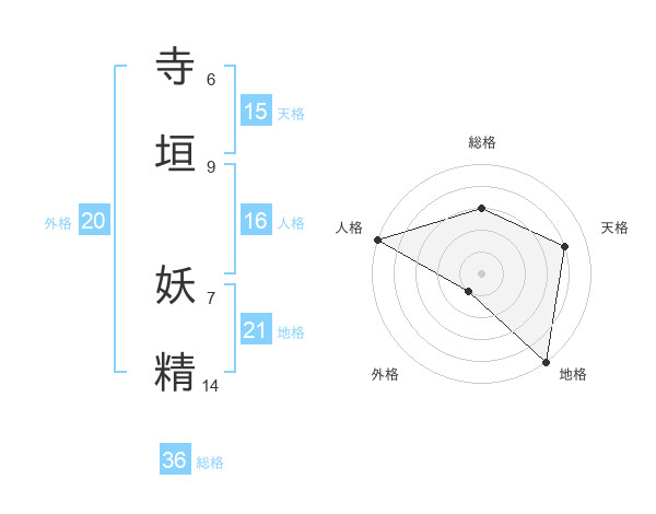 寺垣 妖精さんの地格は21画の5点!