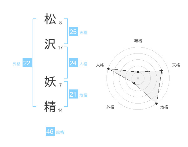 松沢 妖精さんの天格は25画の4点!