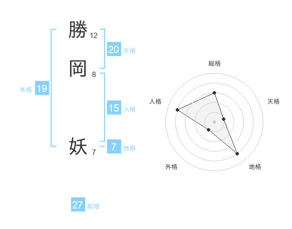 勝岡 妖さんを姓名の画数から五運を鑑定