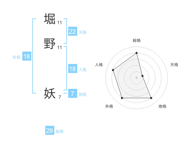 堀野 妖さんの総格は29画の4点!