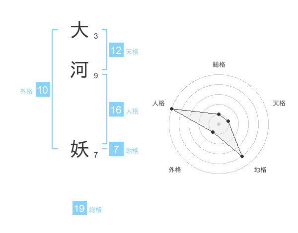 大河 妖さんの総格は19画の1点!