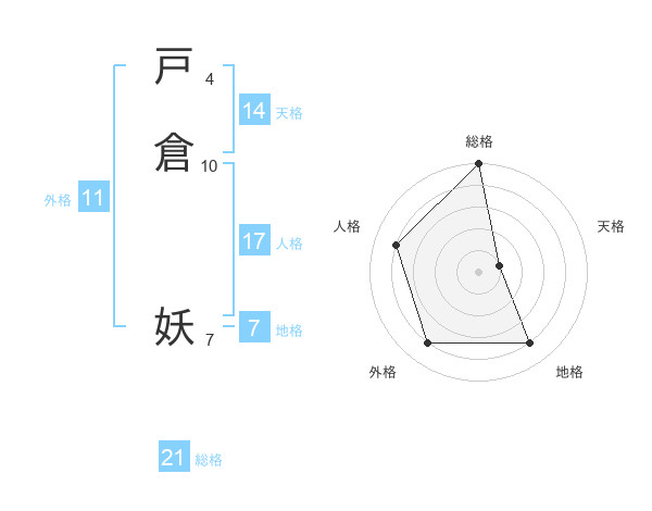 戸倉 妖さんを姓名の画数から五運を鑑定