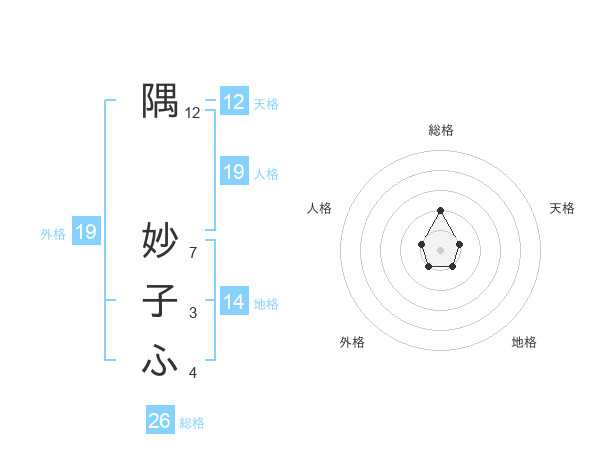 隅 妙子ふさんを姓名の画数から五運を鑑定