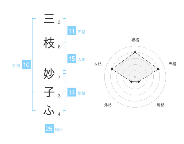 三枝 妙子ふさんを姓名の画数から五運を鑑定