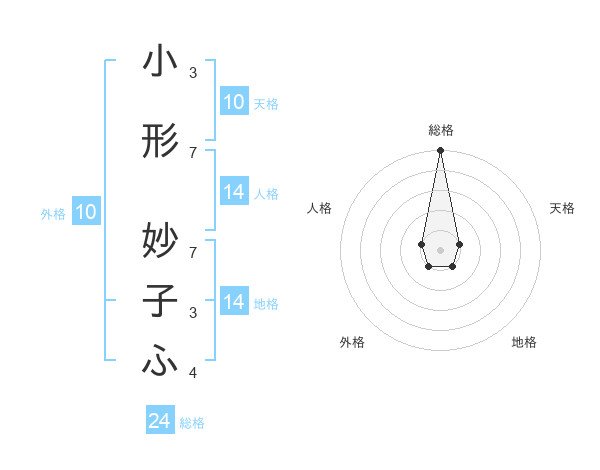 小形 妙子ふさんの総格は24画の5点!