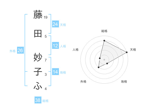 藤田 妙子ふさんを姓名の画数から五運を鑑定