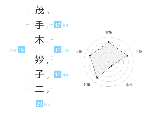 茂手木 妙子二さんを姓名の画数から五運を鑑定