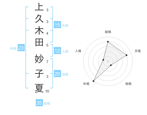 上久木田 妙子夏さんの外格は23画の5点