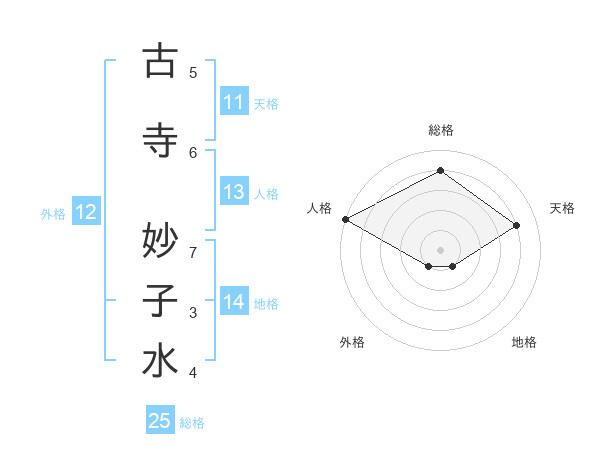 古寺 妙子水さんの総格は25画の4点!