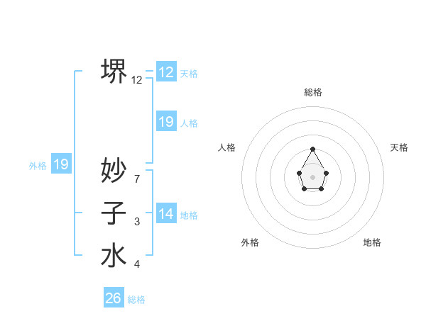 堺 妙子水さんの外格は19画の1点!
