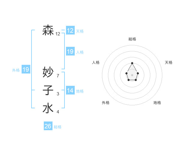 森 妙子水さんの総格は26画の2点!