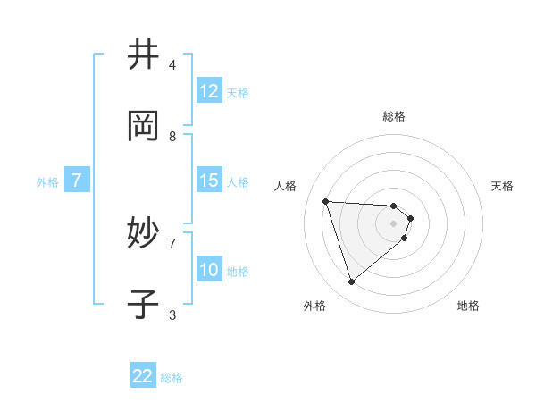 井岡 妙子さんを姓名の画数から五運を鑑定
