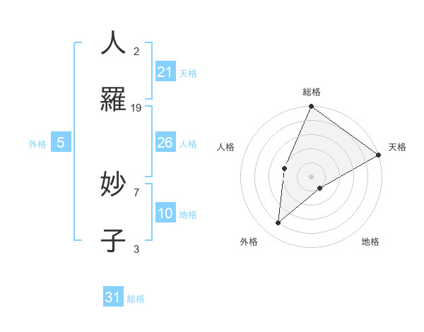 人羅 妙子さんの総格は31画の5点!