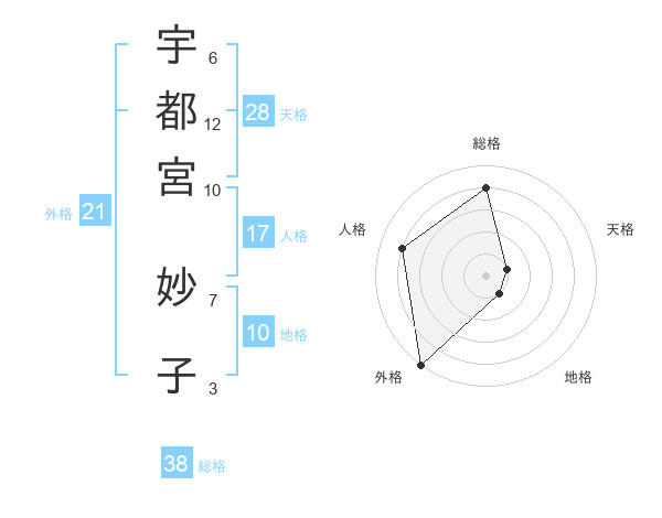 宇都宮 妙子さんを姓名の画数から五運を鑑定