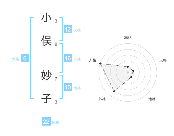 小俣 妙子さんの総格は22画の1点!