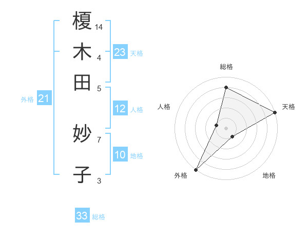 榎木田 妙子さんを姓名の画数から五運を鑑定