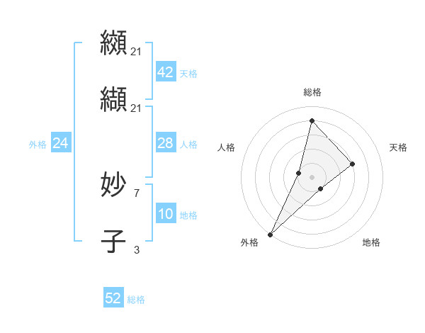 纐纈 妙子さんの総格は52画の4点!