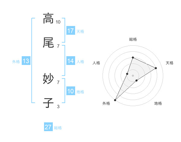 高尾 妙子さんを姓名の画数から五運を鑑定