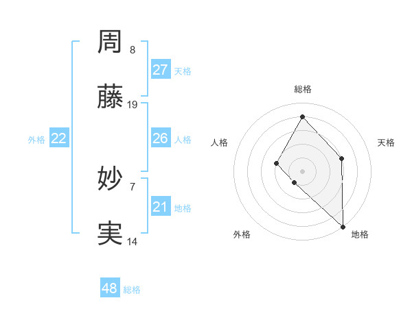 周藤 妙実さんを姓名の画数から五運を鑑定