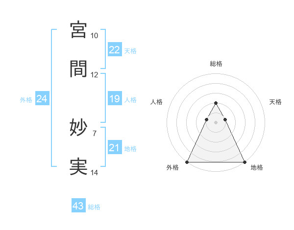 宮間 妙実さんを姓名の画数から五運を鑑定
