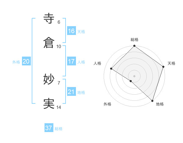 寺倉 妙実さんを姓名の画数から五運を鑑定