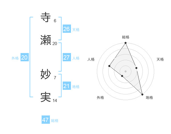 寺瀬 妙実さんを姓名の画数から五運を鑑定