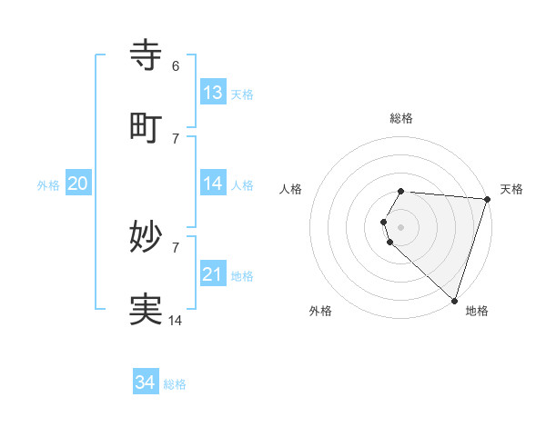 寺町 妙実さんの地格は21画の5点!