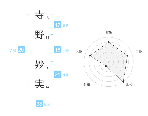 寺野 妙実さんの地格は21画の5点!