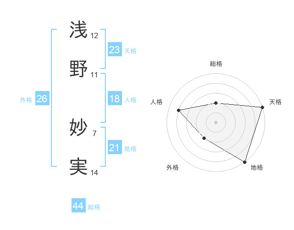浅野 妙実さんを姓名の画数から五運を鑑定