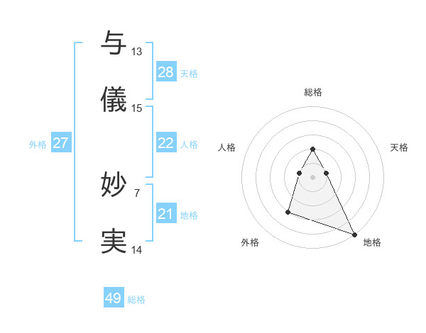 与儀 妙実さんを姓名の画数から五運を鑑定