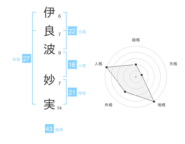伊良波 妙実さんを姓名の画数から五運を鑑定