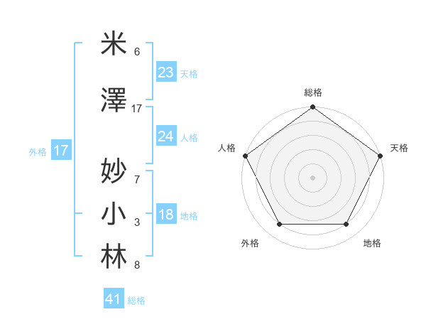 米澤 妙小林さんを姓名の画数から五運を鑑定