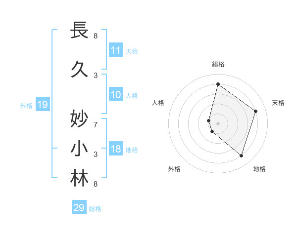 長久 妙小林さんの天格は11画の4点!
