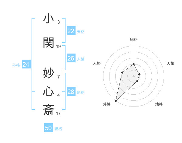 小関 妙心斎さんを姓名の画数から五運を鑑定