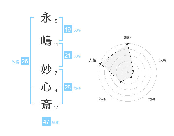 永嶋 妙心斎さんを姓名の画数から五運を鑑定