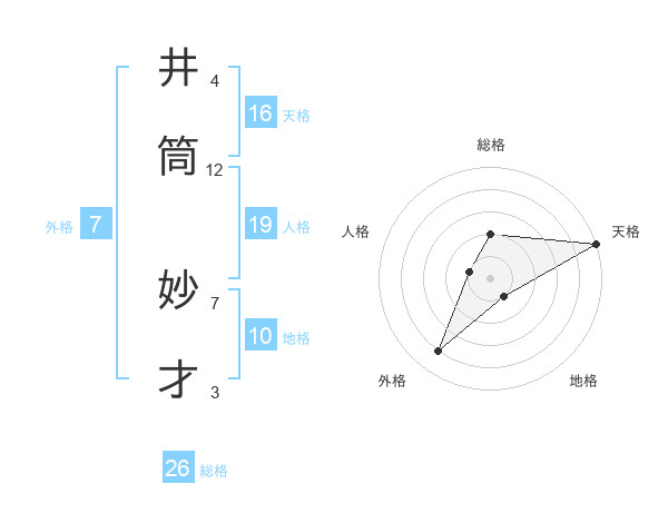 井筒 妙才さんの総格は26画の2点!