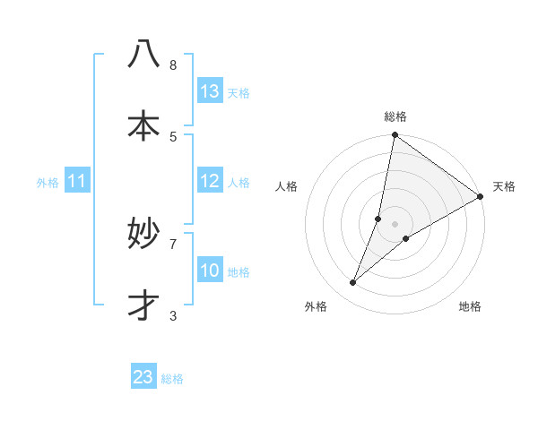 八本 妙才さんの総格は23画の5点!