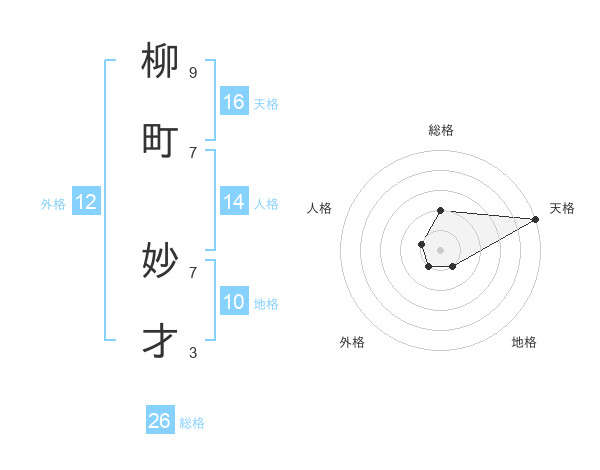 柳町 妙才さんの天格は16画の5点!